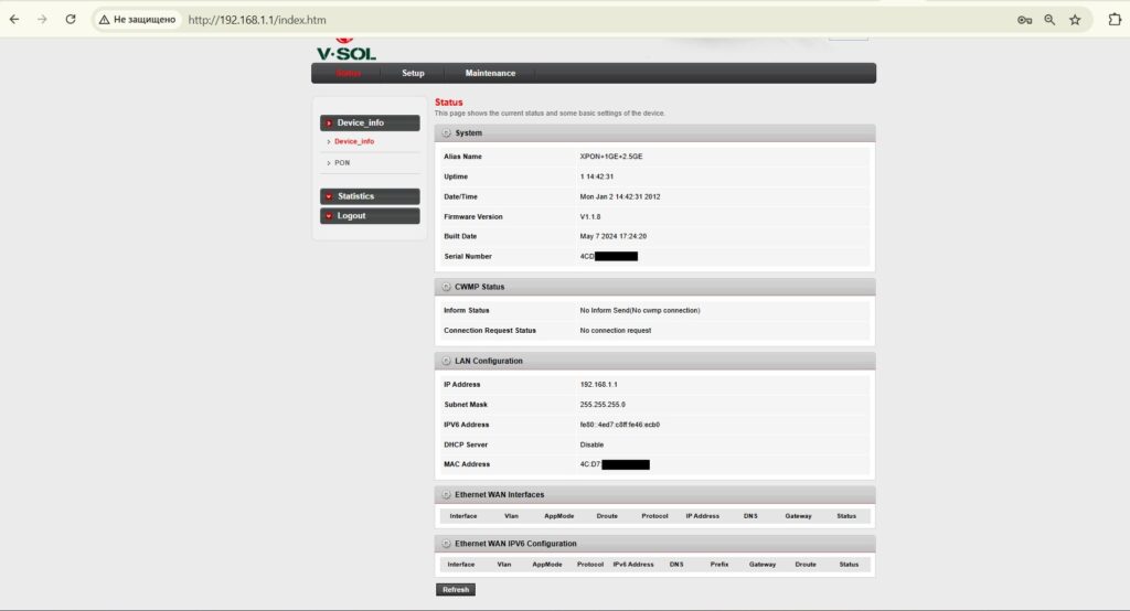 show ont port learned-mac 4 1 eth 1 Просмотр мака на медном порту ону